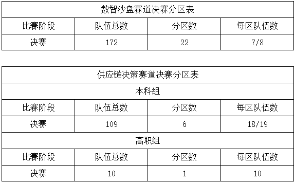 1、数智沙盘赛道由于高职组参赛队伍数较少,将本科组与高职组团队混合进行赛区分配。高职组团队排名按照先名次后标准分再经营得分的排序进行并确认奖项;本科组团队排名按照赛区内剔除高职团队成绩之后排序进行并确认奖项。